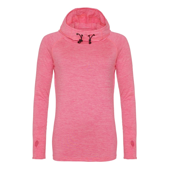 Dámský sportovní střih, stahovací kapuce se zarážkami, ideální k vrstvení, raglánové rukávy pro snadnější pohyb, reflexní detaily na kapuci, otvor na palec, jednoduchá změna značky. Značka vyrábí vlastní CoolFit textilii - směs materiálů obsahující elastan, který zajišťuje pružnost a skvělé pohodlí.