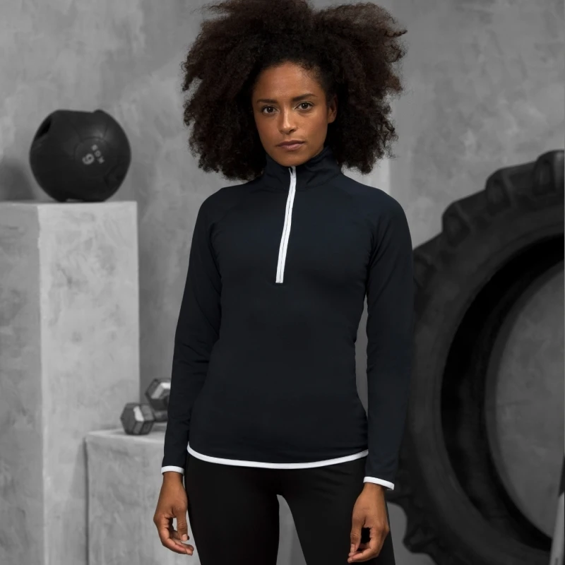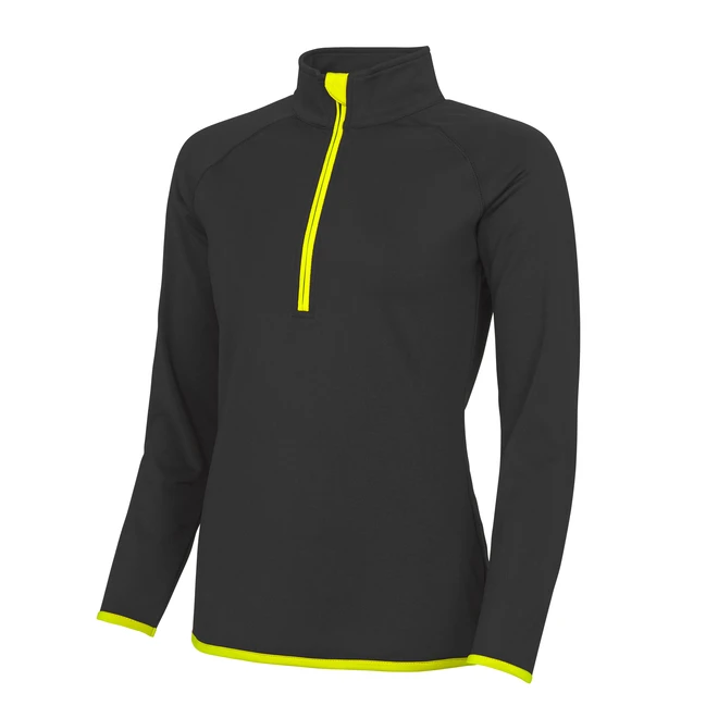 Dámský střih, raglánové rukávy pro snadnější pohyb, zip do 1/2, stojáček, chránič brady, kontrastní lemování kolem manžet, dolního lemu a zipu, reflexní cedulka na zadní straně krku, UPF 30+ UV ochrana, jednoduchá změna značky.