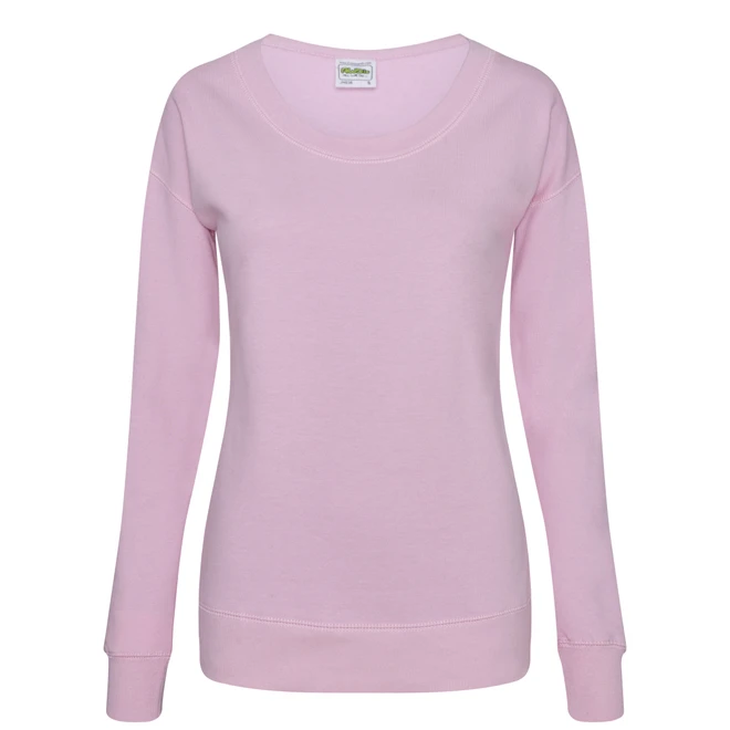 Hlubší kulatý žebrovaný výstřih, "spadlá" ramena, dámský střih, dvojité prošití detailů, žebrované manžety a spodní lem, jednoduchá změna značky, ideální povrch pro potisk.