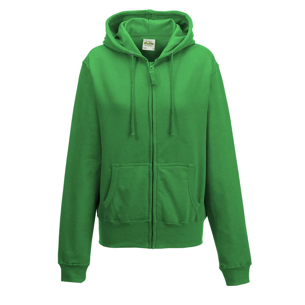 Dvojité prošití detailů, skrytý zip po celé délce, kapuce z dvojité vrstvy látky, šňůrky ve stejné barvě jako mikina, výztužná páska za krkem ve stejné barvě jako mikina, klokaní kapsa se skrytým vývodem na sluchátka, žebrované manžety a široký spodní lem, žebrování kolem klokaní kapsy, jednoduchá změna značky, ideální povrch pro potisk.