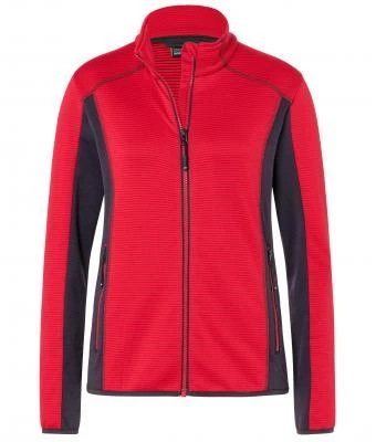 Příjemně měkká bi-elastická snadno udržovatelná tkanina, jemný pruhovaný vzhled, po celé délce skrytý zip s ochranou brady, stojací límec, kontrastní vložky, ploché švy, 2 boční kapsy na zip, YKK zipy, lehce vypasovaný střih.