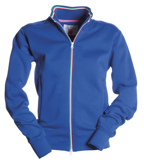 Vypasovaný střih, plastový zip po celé délce - v barvách italské vlajky, dvojitý jezdec, žebrovaný límec s kontrastním proužkem, vsazené rukávy, 2 kapsy, elastické manžety a spodní lem, vyztužené švy