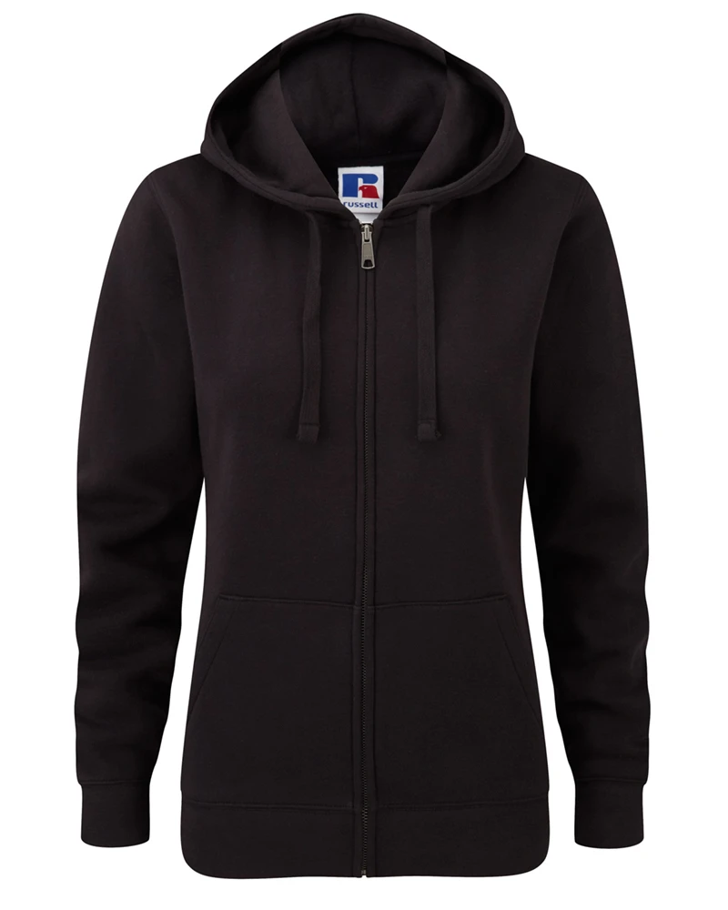 Gramáž: 280 g/m²; Materiál: 80% česaná, prstencově spřádaná bavlna, 20% polyester;100% bavlněná lícová příze (3vláknová konstrukce); Dvouvrstvá kapuce, ploché stahovací šňůrky, výztužná páska za krkem s nápletem "rybí kost", užší v ramenou s bočními švy, skrytý kovový YKK zip (antické stříbro) pro snadnější dekoraci, přístup k MP3 sluchátkům, 2 přední kapsy, průramky, manžety a lem se skrytými švy, moderní dámský střih; Certifikáty: STANDARD 100 by OEKO-TEX®; WRAP