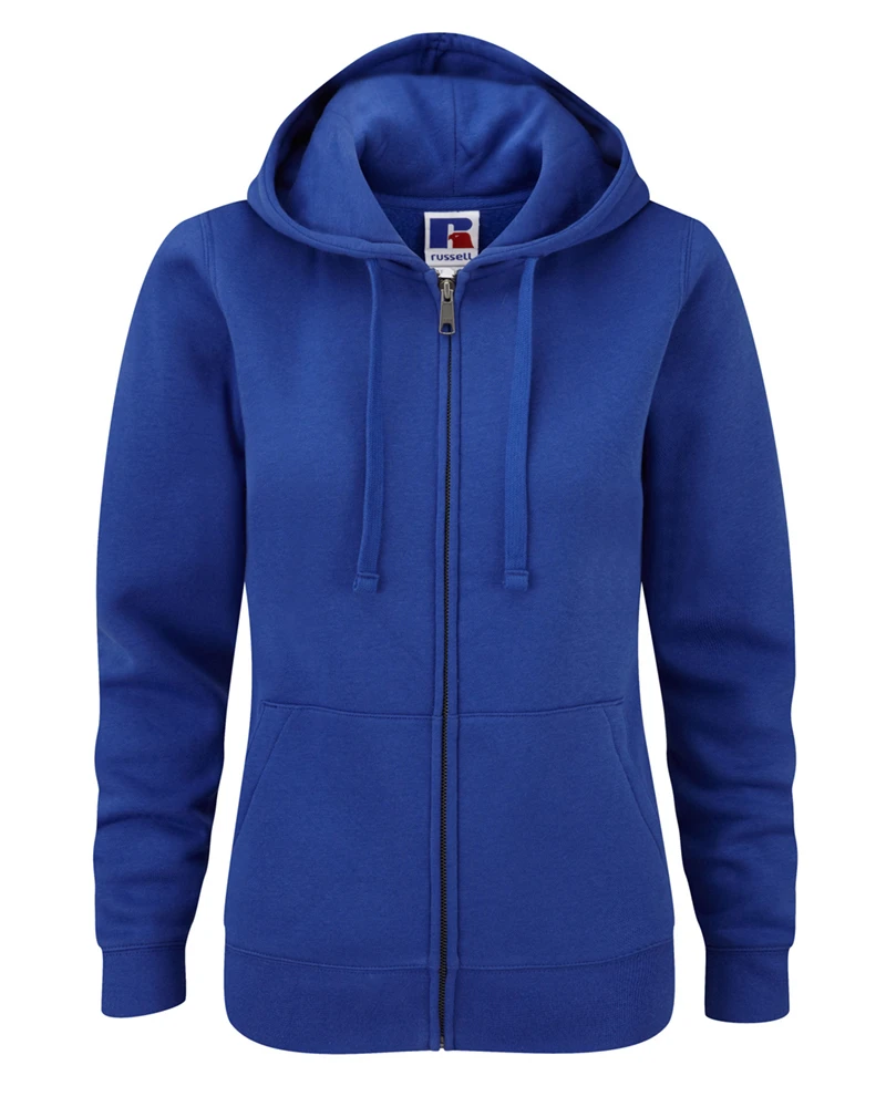 Gramáž: 280 g/m²; Materiál: 80% česaná, prstencově spřádaná bavlna, 20% polyester;100% bavlněná lícová příze (3vláknová konstrukce); Dvouvrstvá kapuce, ploché stahovací šňůrky, výztužná páska za krkem s nápletem "rybí kost", užší v ramenou s bočními švy, skrytý kovový YKK zip (antické stříbro) pro snadnější dekoraci, přístup k MP3 sluchátkům, 2 přední kapsy, průramky, manžety a lem se skrytými švy, moderní dámský střih; Certifikáty: STANDARD 100 by OEKO-TEX®; WRAP