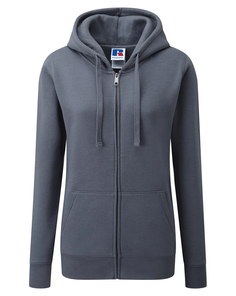 Gramáž: 280 g/m²; Materiál: 80% česaná, prstencově spřádaná bavlna, 20% polyester;100% bavlněná lícová příze (3vláknová konstrukce); Dvouvrstvá kapuce, ploché stahovací šňůrky, výztužná páska za krkem s nápletem "rybí kost", užší v ramenou s bočními švy, skrytý kovový YKK zip (antické stříbro) pro snadnější dekoraci, přístup k MP3 sluchátkům, 2 přední kapsy, průramky, manžety a lem se skrytými švy, moderní dámský střih; Certifikáty: STANDARD 100 by OEKO-TEX®; WRAP