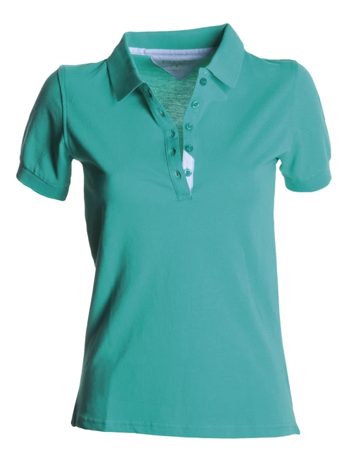 Krátký rukáv, zapínání na 5 knoflíčků, perleťové knoflíčky ve stejné barvě jako polokošile, žebrovaný límeček a manžety, vnitřní výztužná páska za krkem, boční rozparky, vnitřek límce v odstínu Light blue