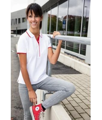 Kvalitní piké, pletený límec a manžety rukávů, kontrastní pruhy na límci a manžetách, léga v kontrastní barvě, knoflíčky tón v tónu, boční rozparky, vypasovaný střih, zapínání na 4 knoflíčky.