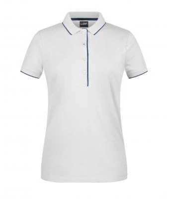 Kvalitní piké, pletený límec a manžety rukávů, kontrastní pruhy na límci a manžetách, léga v kontrastní barvě, knoflíčky tón v tónu, boční rozparky, vypasovaný střih, zapínání na 4 knoflíčky.