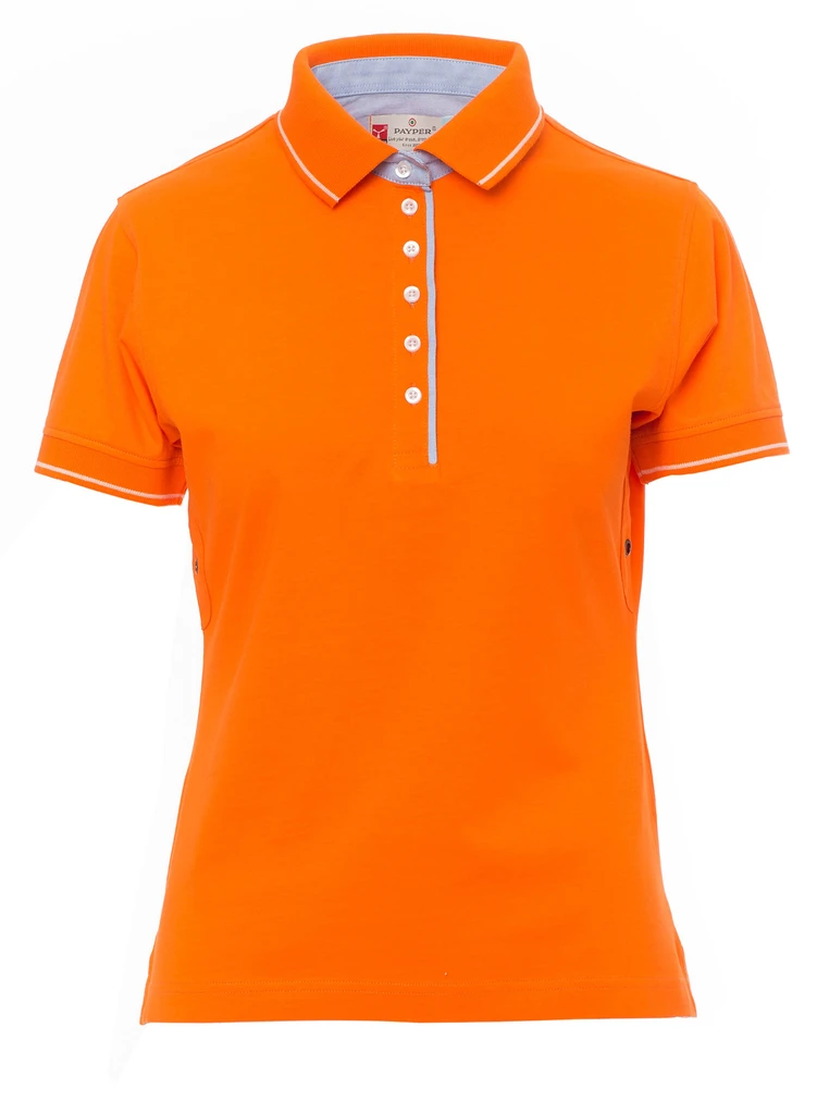 Krátký rukáv, vypasovaný střih, zapínání na 6 bílých knoflíků, vnitřní límeček, rozparky a léga v barvě Oxford blue, žebrování na límci a na manžetách, kontrastní proužek na límci a manžetách, pod podpažím 2 větrací otvory, boční rozparky s vyztuženými švy, elastické švy, výztužná páska za krkem