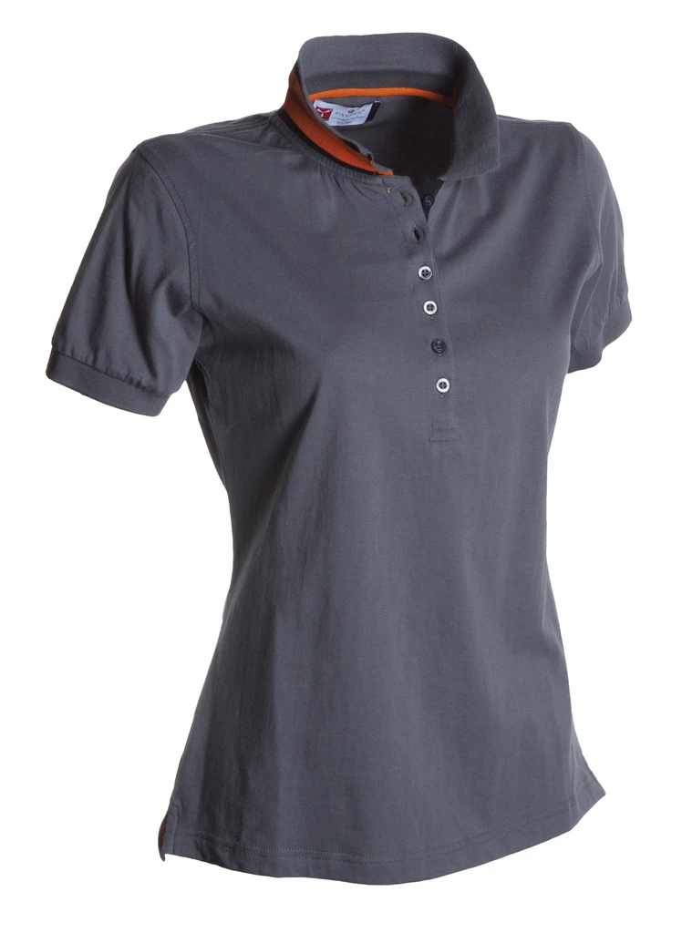 Krátký rukáv, zapínání na 6 knoflíčků (tón v tónu), na límci kontrastní pruh, vnitřní knoflíková léga a boční rozparky v kontrastní barvě, na pravém rukávu svislý úzký proužek v kontrastní barvě, žebrované manžety, výztužná páska za krkem