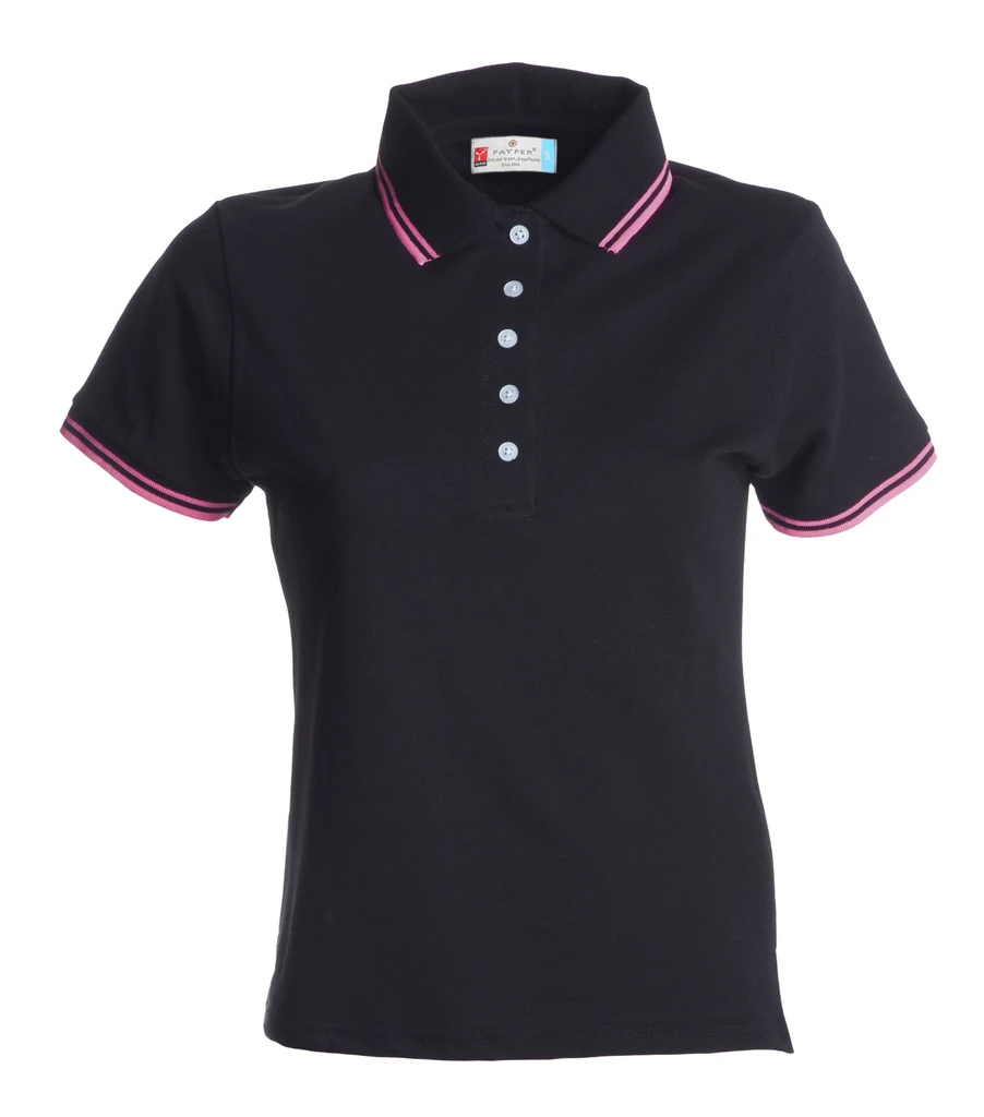 Krátký rukáv, vypasovaný střih, zapínání na 5 bílých knoflíků, žebrování na límci a manžetách, kontrastní proužek na límci a manžetách, boční rozparky s vyztuženými švy, elastické švy, výztužná páska za krkem