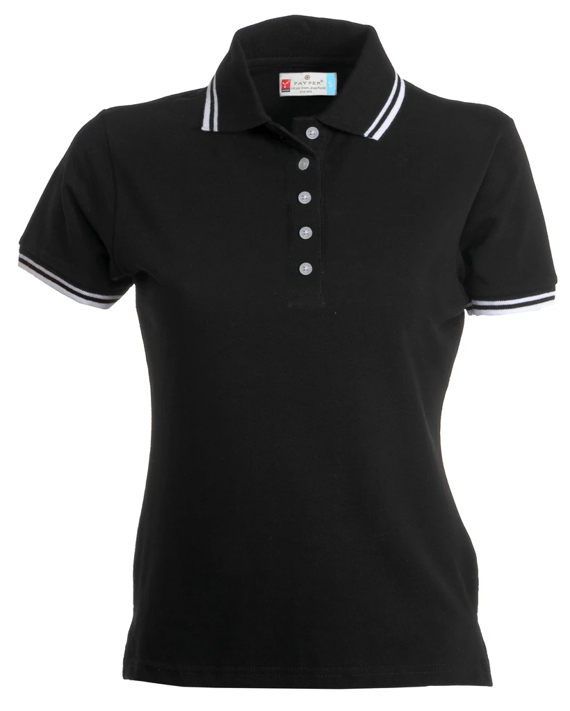 Krátký rukáv, vypasovaný střih, zapínání na 5 bílých knoflíků, žebrování na límci a manžetách, kontrastní proužek na límci a manžetách, boční rozparky s vyztuženými švy, elastické švy, výztužná páska za krkem