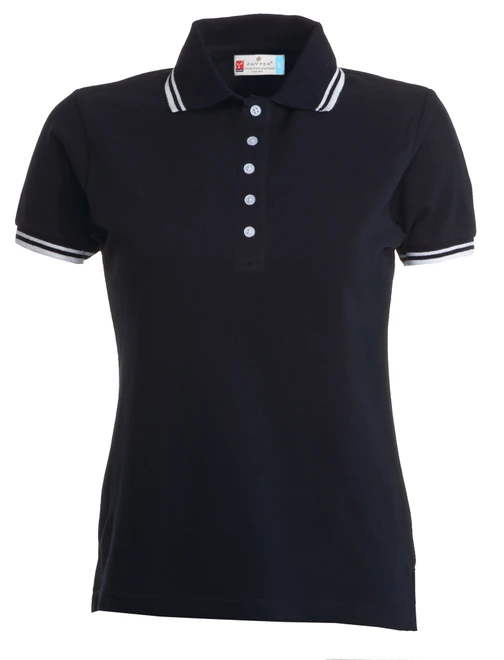 Krátký rukáv, vypasovaný střih, zapínání na 5 bílých knoflíků, žebrování na límci a manžetách, kontrastní proužek na límci a manžetách, boční rozparky s vyztuženými švy, elastické švy, výztužná páska za krkem