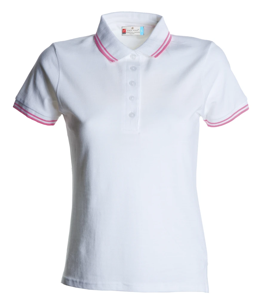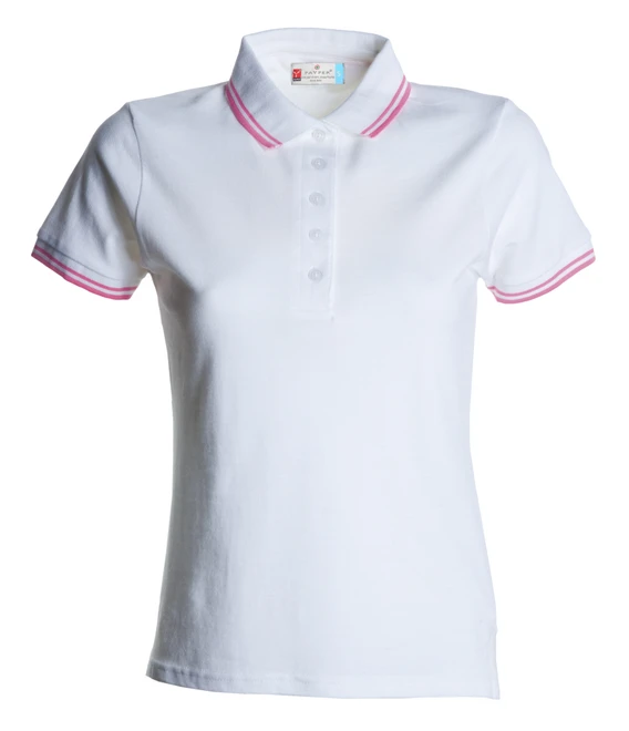 Krátký rukáv, vypasovaný střih, zapínání na 5 bílých knoflíků, žebrování na límci a manžetách, kontrastní proužek na límci a manžetách, boční rozparky s vyztuženými švy, elastické švy, výztužná páska za krkem