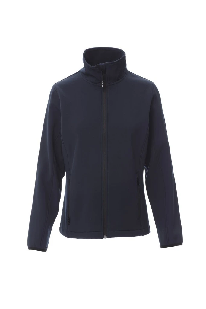 Dámská ergonomická dvouvrstvá nepromokavá bunda, ošetřena speciální impregnační vrstvou, přiléhavé rukávy, zapínání na dlouhý lemovaný SBS zip, rukávy zakončené úzkým pružným lemem, dvě postranní kapsy na zip
