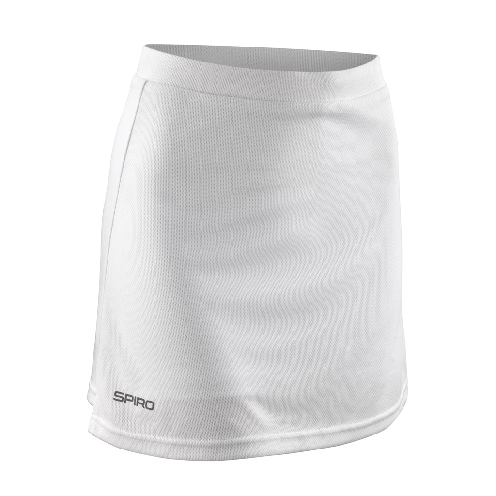 Elastický pas, sukně s integrovanými šortkami, ploché boční švy, náplet "waffle", materiál dobře odvádějící vlhkost, mimořádně lehká a větruodolná, reflexní logo SPIRO, vhodná pro výšivku a transferový tisk.