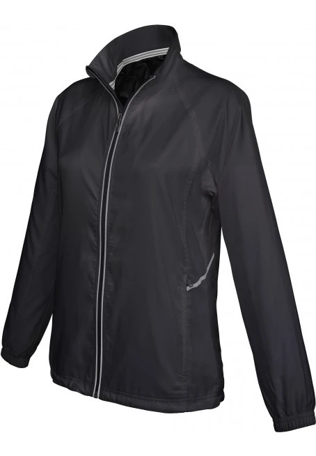 Rychleschnoucí materiál. Podšívka ze síťoviny. Zip po celé délce, s reflexním lemováním. 2 přední kapsy na zip. 1 vnitřní kapsa. Elastické manžety. Kolem spodního lemu stahovací šňůrka se zarážkami. Reflexní proužky na bocích.
