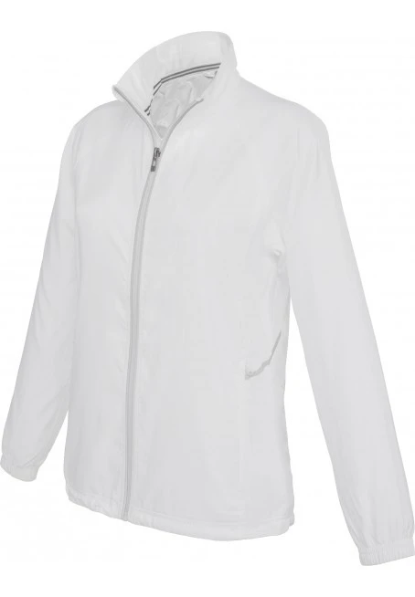 Rychleschnoucí materiál. Podšívka ze síťoviny. Zip po celé délce, s reflexním lemováním. 2 přední kapsy na zip. 1 vnitřní kapsa. Elastické manžety. Kolem spodního lemu stahovací šňůrka se zarážkami. Reflexní proužky na bocích.