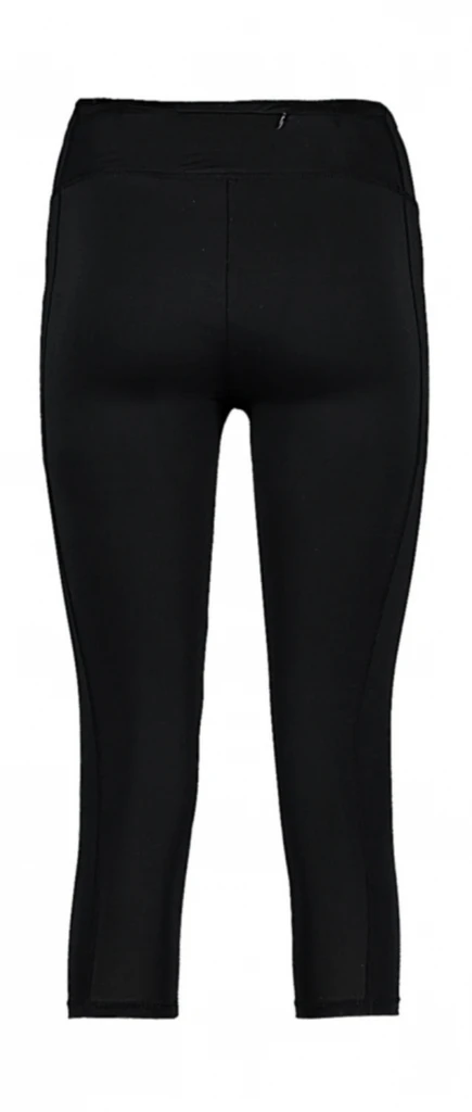 Široký dvojitý komfortní pas, skryté kapsy na zip umístěné v zadní části pasu, ergonomické ploché švy, 3/4 délka.