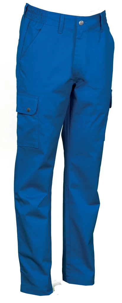 Vhodné na všechny roční období, elastické řasení na bocích, poutka na pásek, zapínání na zip a knoflík, 2 přední kapsy, 2 boční kapsy s klopou, na levé nohavici kapsa na zip, 2 zadní kapsy na knoflík