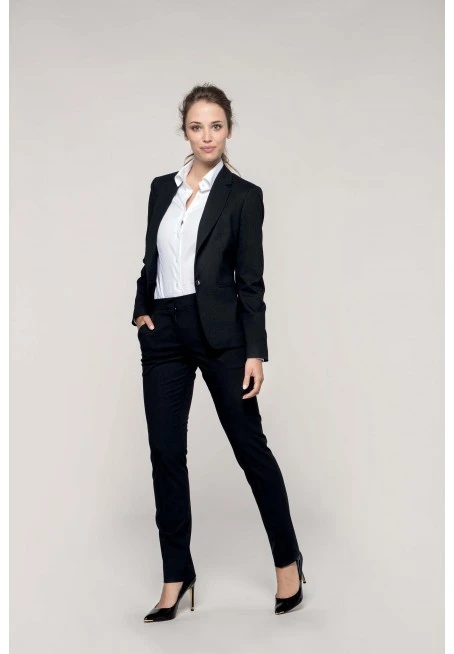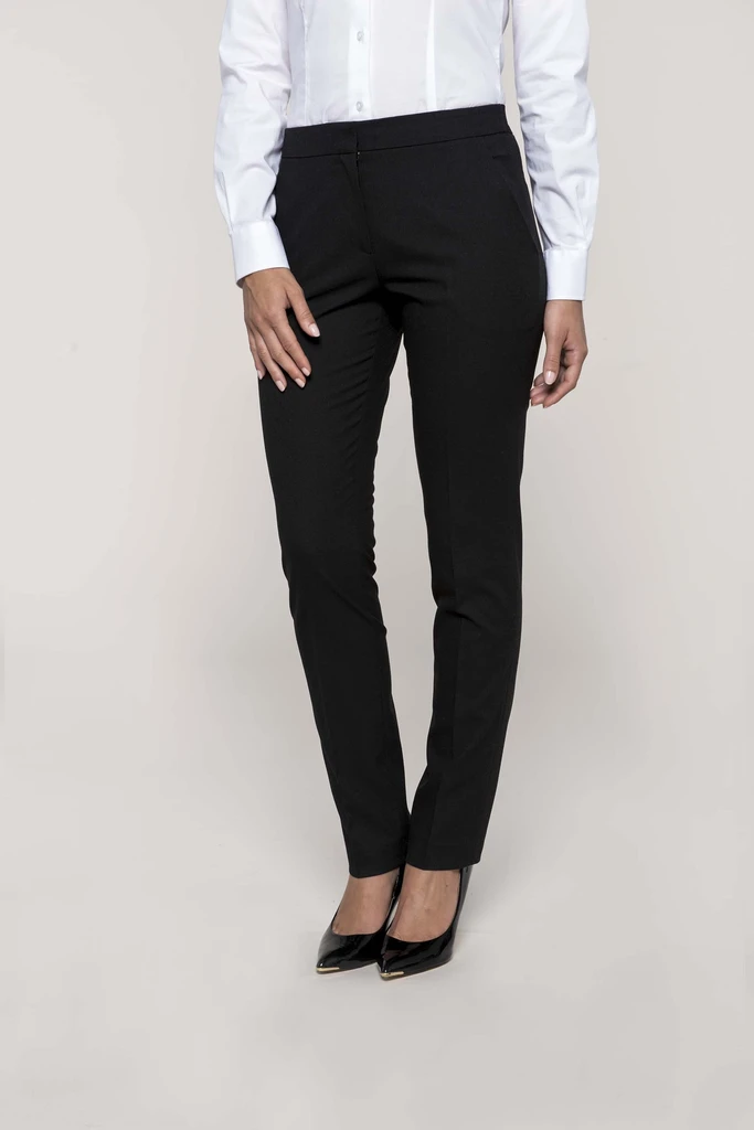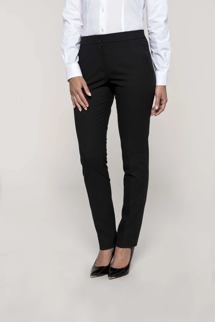 Střih "slim fit", 2 přední kapsy, 2 zadní kapsy, zapínání na zip, na zadní části elastický pas pro optimální komfort, vnitřní délka nohavice - 78 cm, na nohavicích neviditelné lemy.