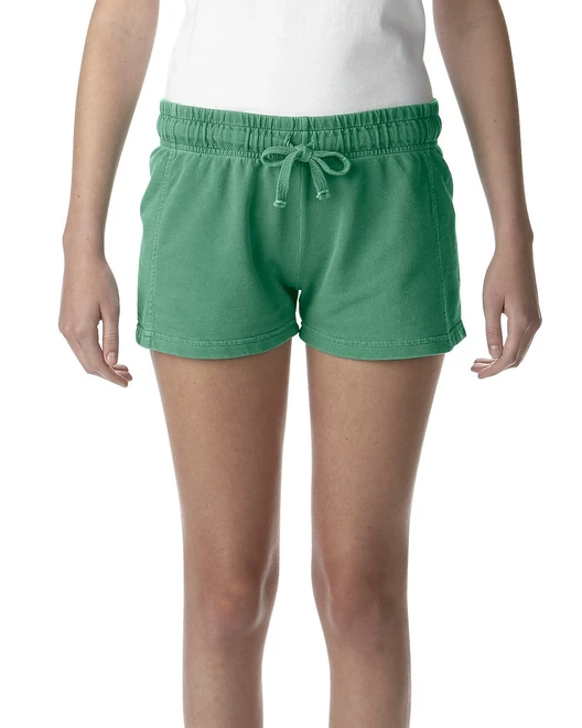 Předeprané, jednotlivě barvené (garment dye), vložené boční panely, vícenásobně prošitý pas s barevně ladící šňůrkou, dvojité prošití spodního lemu.