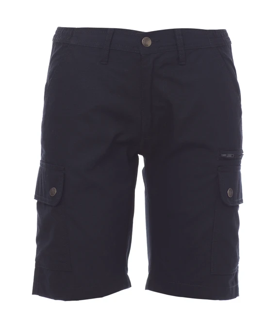 Zapínání na zip a knoflík, poutka na pásek, 2 klasické přední kapsy, 2 velké boční kapsy s klopou a cvočky, na levé nohavici kapsa na zip, 2 zadní kapsy na knoflík
