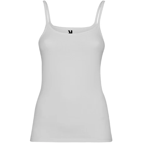 Žebrovaná ramínka a výstřih, boční švy, prodyšná a pohodlná tkanina, přiléhavý střih, určeno jako spodní prádlo, odnímatelná cedulka, úprava Roly.
