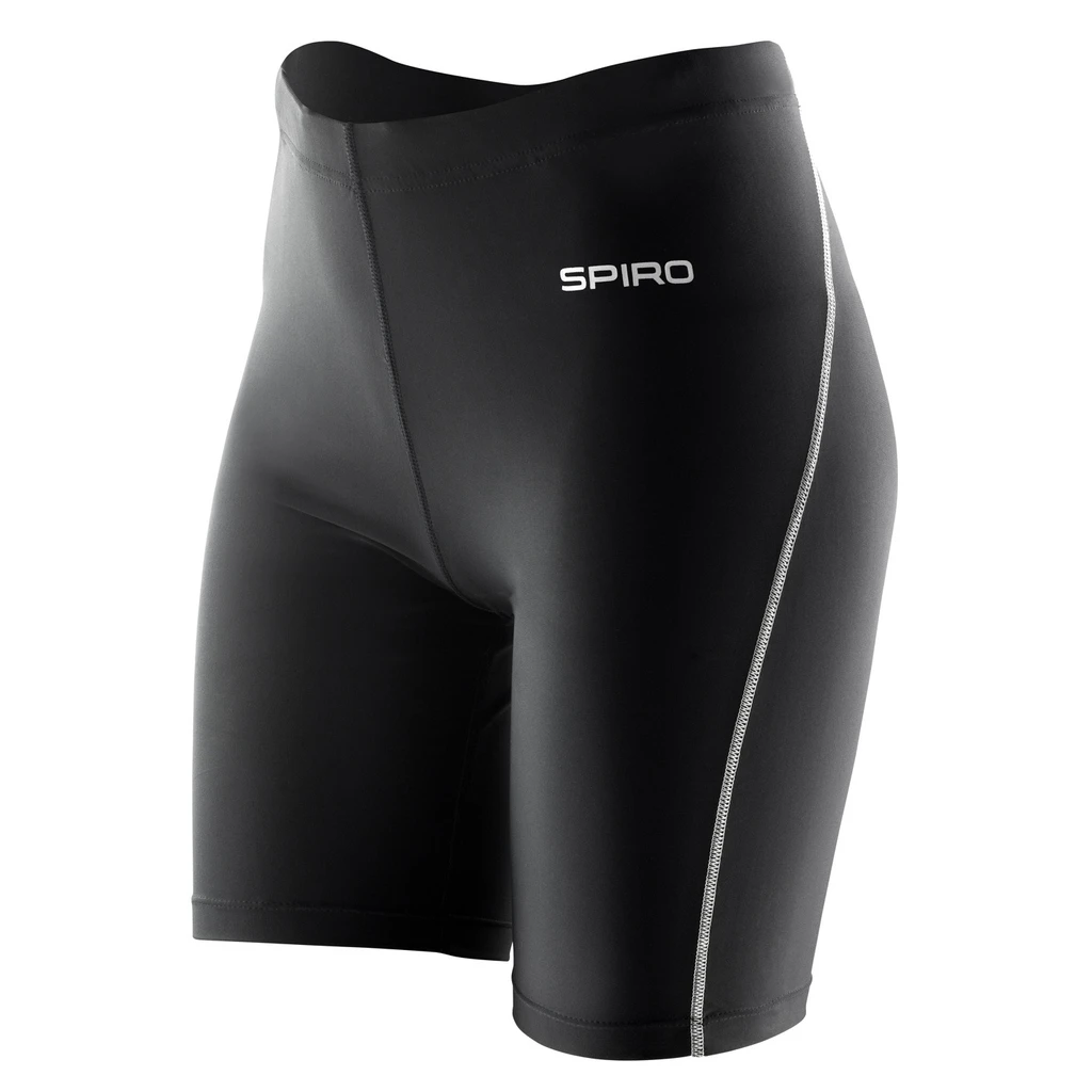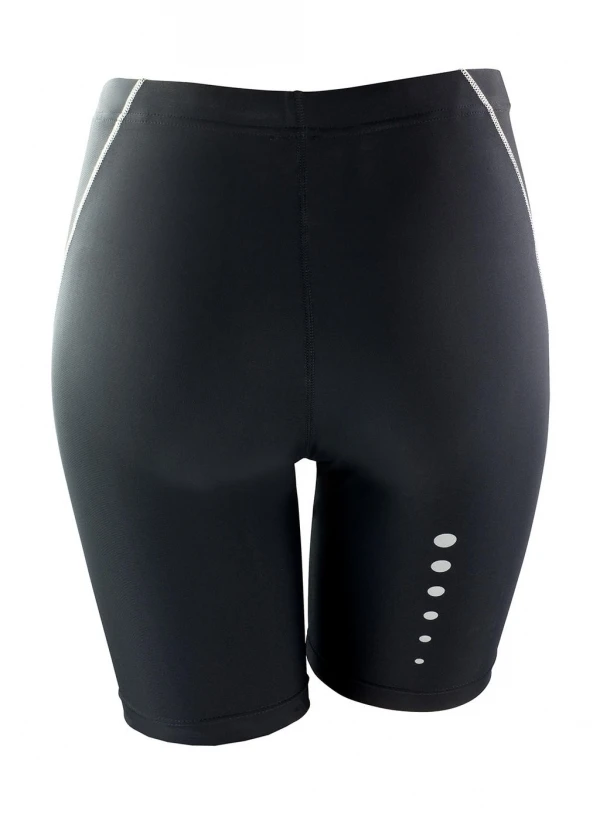 Prodyšné, elastický pas a stahovací šňůra, ploché boční švy, panely s kontrastním stehem na nohavici, vnitřní kapsa na zadní středové části, reflexní logo SPIRO na levém stehně a 5 teček dole na zadní části pravé nohavice, vhodné pro transferový tisk a výšivku.