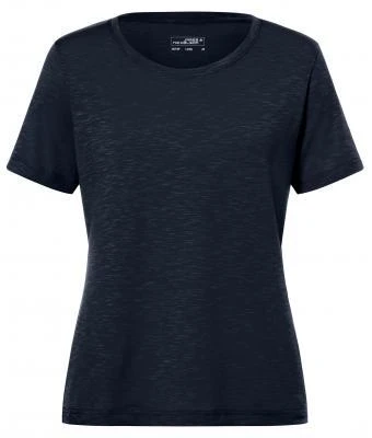 Funkční materiál vhodný pro volný čas a sport, prodyšný rychleschnoucí a vlhkost regulující materiál, elastický jednoduchý úplet, výztužná páska za krkem, kulatý výstřih, lehce pasovaný střih.