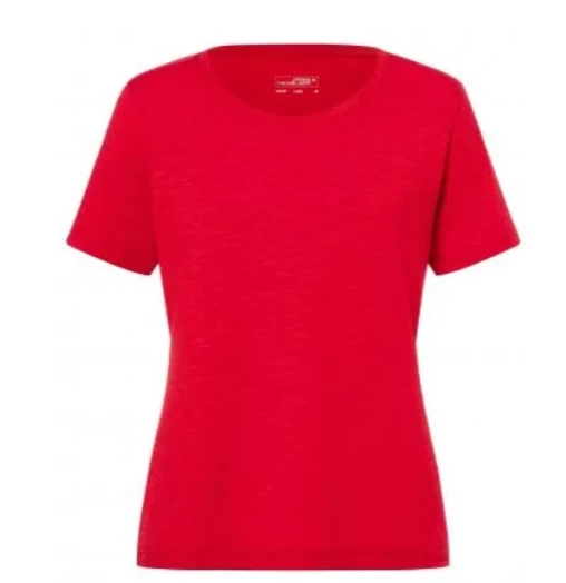 Funkční materiál vhodný pro volný čas a sport, prodyšný rychleschnoucí a vlhkost regulující materiál, elastický jednoduchý úplet, výztužná páska za krkem, kulatý výstřih, lehce pasovaný střih.
