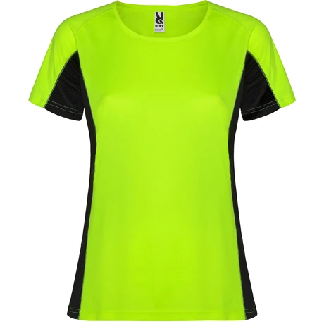 Krátké raglánové rukávy, kulatý výstřih, zpevněné švy na průkrčníku, kombinace dvou polyesterových tkanin, mikroperforovaný materiál na bocích a průramcích, funkční materiál, pohodlné a snadno přizpůsobivé, prodyšný rychleschnoucí materiál, odstranitelná cedulka, vhodné pro potisk sublimací.
