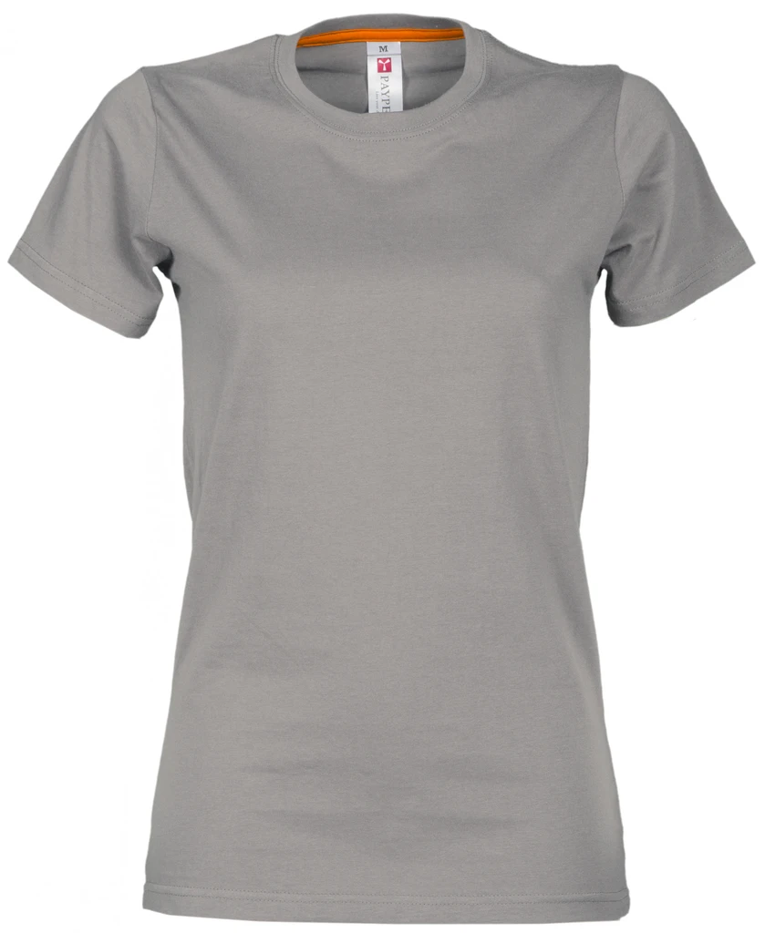 Krátký rukáv, kulatý výstřih, vypasovaný střih, 15 mm široký lem okolo výstřihu s příměsí spandexu, kontrastní vnitřní výztužná páska za krkem, elastické švy, boční švy