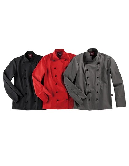 Dlouhé rukávy s vykrajovanými manžetami, zapínání na 12 černých knoflíků, lze prát na 95 °C, snadná údržba, vysoce odolný stálobarevný materiál.