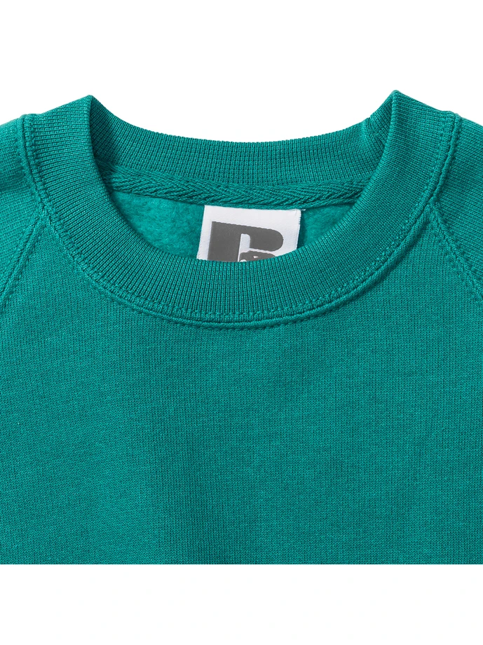 762B-Winter EmeraldGramáž: 295 g/m²; Materiál: 50% česaná, prstencově spřádaná bavlna; 50% polyester; Povrchová úprava SpotShieldTM odolávající zašpinění. Páska na krk s nápletem „rybí kost“ pro pohodlí a stabilitu. Raglánový rukáv. Žebrovaný lem 1x1 s elastanem na lemu a manžetách; Certifikáty: STANDARD 100 by OEKO-TEX®