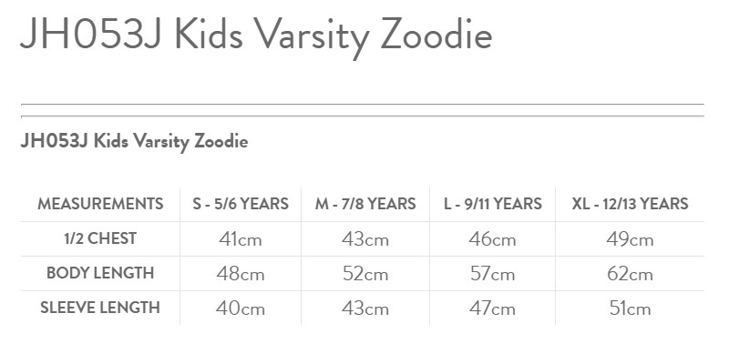 Dětská Mikina Kids Varsity Zoodie JH053J