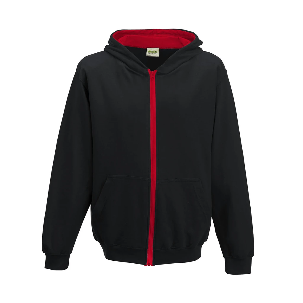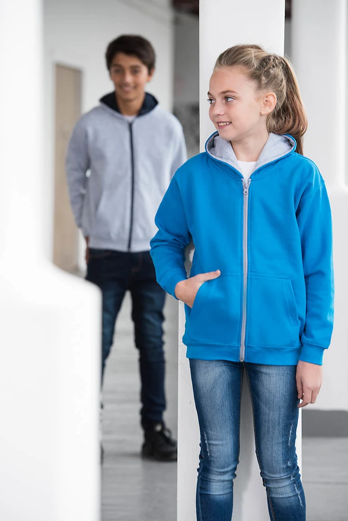 Kontrastní plastový zip po celé délce, dvojité prošití detailů, kapuce z dvojité vrstvy látky, vnitřek kapuce v kontrastní barvě, žádné šňůrky (splňující EU regulace), klokaní kapsa se skrytým vývodem na sluchátka, žebrované manžety a spodní lem, jednoduchá změna značky, ideální povrch pro potisk.