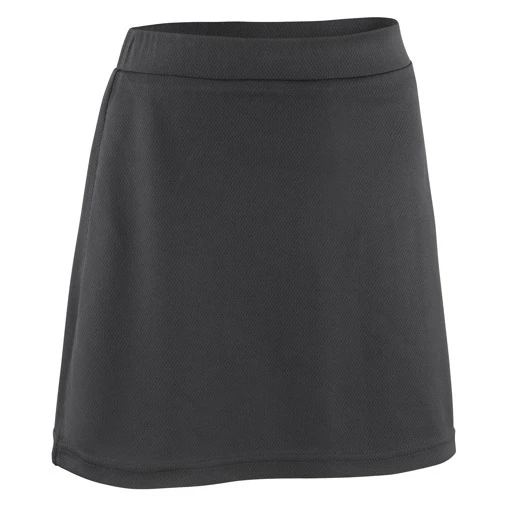 Elastický pas, sukně s integrovanými šortkami, ploché boční švy, náplet "waffle", materiál dobře odvádějící vlhkost, mimořádně lehká a větruodolná, reflexní logo SPIRO, vhodná pro výšivku a transferový tisk.