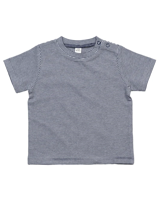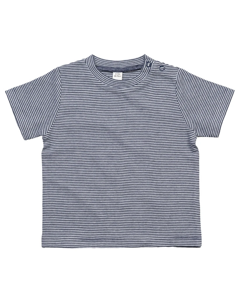 Jemná a pružná látka, pruhovaný vzor, kulatý výstřih s výstužnou páskou, 2 cvočky na stranách výstřihu, dvojitě prošitý lem, lehce odstranitelný štítek pro změnu značky.