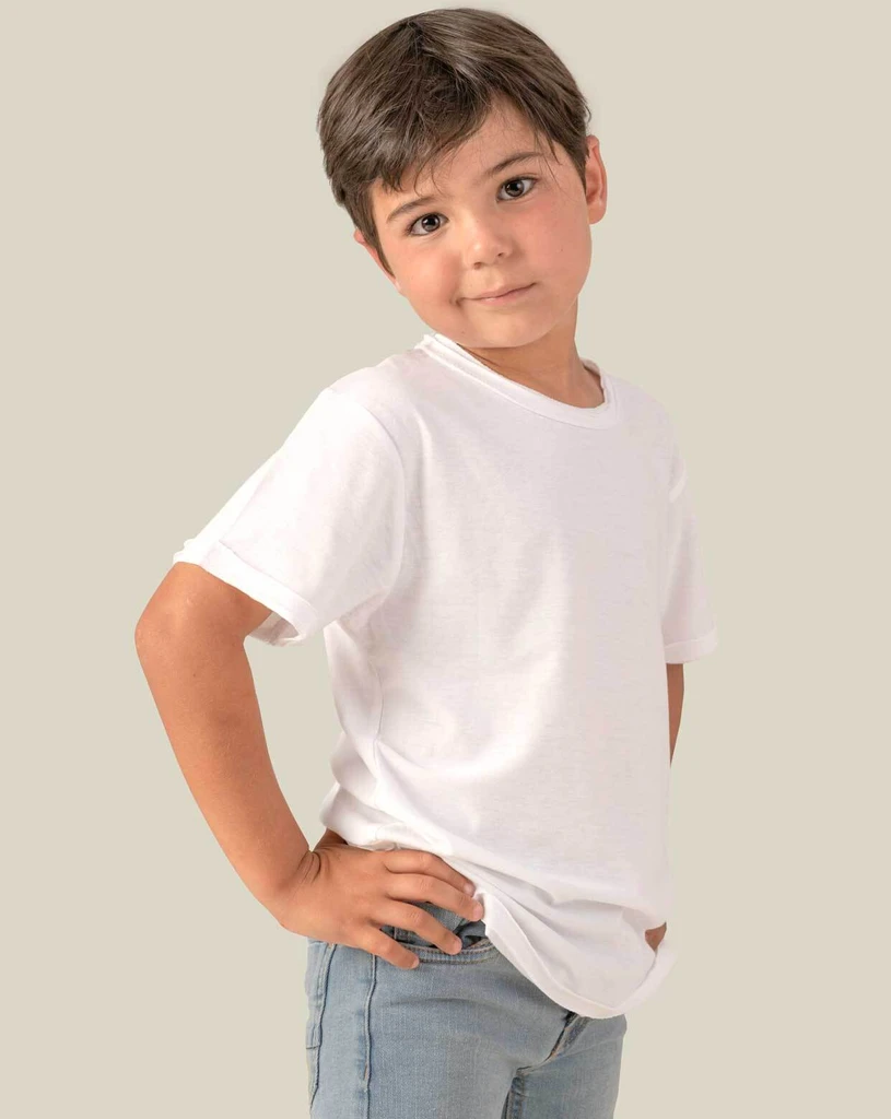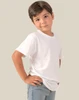 Krátké rukávy, kulatý výstřih, nezačištěné lemy na rukávech a spodním lemu, boční rozparky, odnímatelná cedulka.
