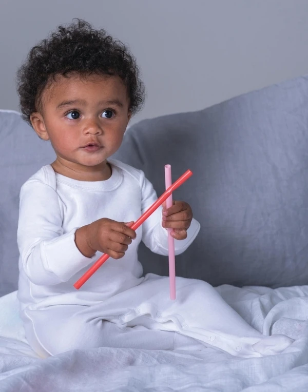 "Obálkový" výstřih s jemným žebrováním, úzký výstřih u konce rukávů, manžety na rukávech, které se dají ohrnovat dle potřeby, cvočky (bez niklu) pro snadnější oblékání, lehce odstranitelný štítek, integrovaná chodidla.