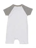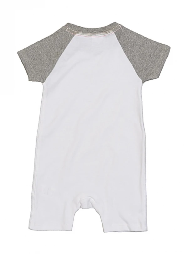 Úplet z měkkého a elastického materiálu, kontrastní raglánové rukávy a proužek u krku, červené patentky u raglánového švu a zapínání u nohou, styl krátkých nohavic, snadno odstranitelný štítek.