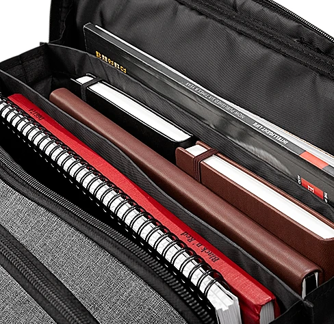 Konstrukce se třemi přihrádkami, kompatibilní s notebookem až do 17 palců, polstrovaná přihrádka na notebook, kompatibilní s iPadem mini/tablet, sekce na dokumenty, odnímatelný nastavitelný ramenní popruh s podložkou, přední kapsa na zip, organizérová sekce, poutka na USB flash disky, popruh tašky Wheelie, polstrovaná rukojeť; Rozměry: 41 x 30 x 14 cm; Kapacita: 13 litrů