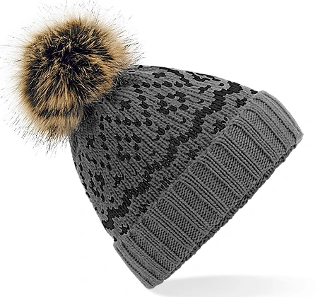 Fair Isle Faux Fur Pop Pom Beanie
