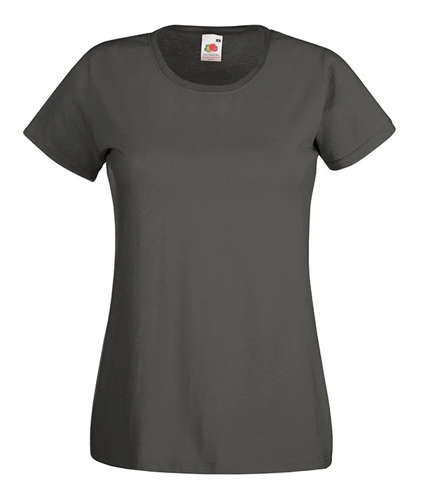 Materiál: 100% bavlna; Heather Grey: 97% bavlna, 3% polyester; HD, R6, RX, VF, VH, HP, H1: 50% bavlna, 50% polyester; Gramáž: 165 g/m² (bílé: 160 g/m²); Výstřih s bavlněným/LYCRA® žebrováním, páska u krku, tvarované boční švy pro ženský střih, jemný úplet pro lepší potisk, odtrhávací štítek, ženský střih Fashion Fit; Certifikáty: STANDARD 100 by OEKO-TEX®; WRAP