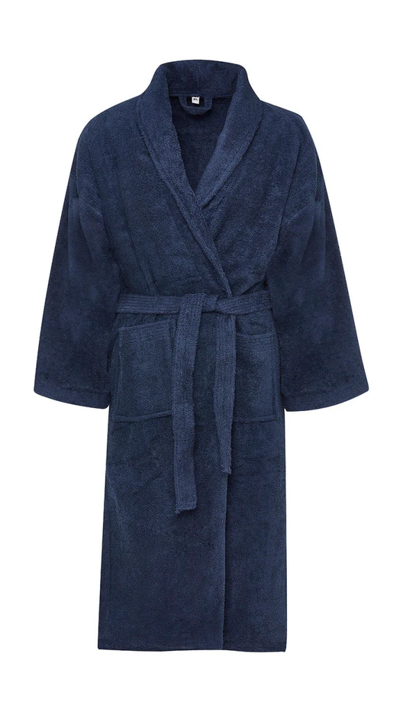 Silný, příjemný a pohodlný, tento prémiový unisex župan ze 100% česané bavlny s šálovým límcem bude doma v každé koupelně, hotelu nebo lázních. Kvalitní detaily, jako jsou našité kapsy, stylové manžety a poutko na zavěšení, z něj dělají skvělou volbu i pro přizpůsobené dárky.