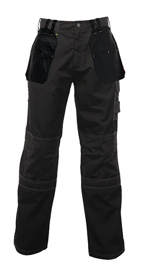 Odolná tkanina s odolnou vodoodpudivou úpravou, durazonové výztuhy: 300 g/m², 100% polyamid, knoflík se zapínáním na zip, poutka na pásek v pase, snadno přístupné skládací kapsy na pouzdro s více přihrádkami, boční a zadní našité kapsy se zapínáním na suchý zip , nákolenní kapsa se zapínáním na suchý zip, kapsa na mobilní telefon, zesílené švy s trojitým prošíváním