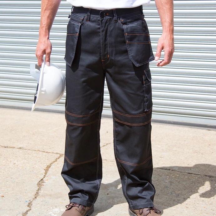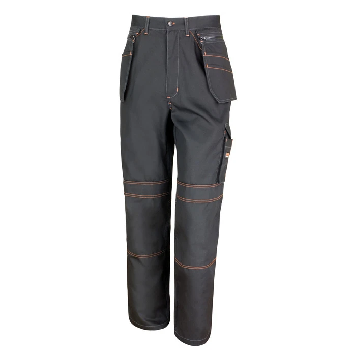Lehké, větruvzdorné, odpuzující vodu a prodyšné, zapínání na zip a knoflík, poutka na opasek, systém odnímatelných předních kapes, cargo kapsy, D-ring, poutko na kladivo, kapsy na kolenou, kontrastní prošívání, unisex.