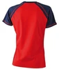 Kontrastní rukávy a průkrčník, lemovka výstřihu, postranní švy.