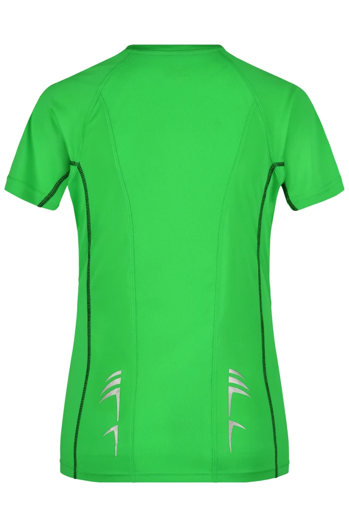 Reflexní proužky vpředu a reflexní potisk vzadu.